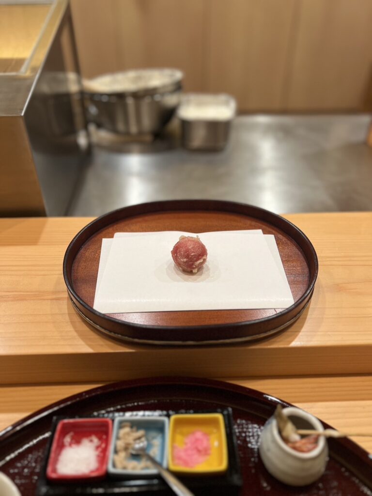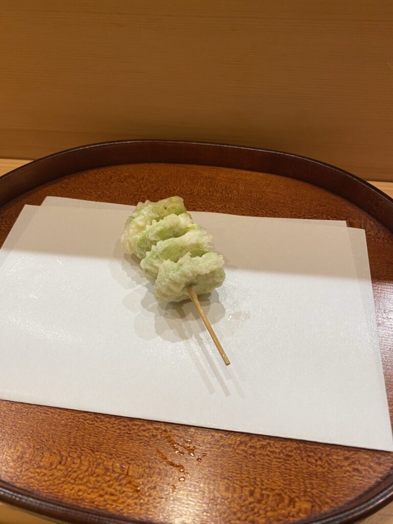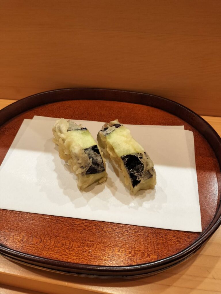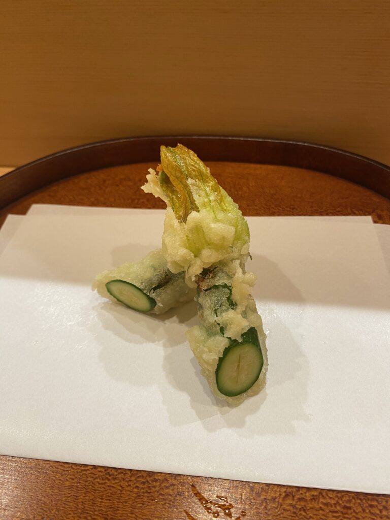 海老 キス 帆立 舞茸 そら豆 茄子 トウモロコシ 穴子 稚鮎 ズッキーニ トマト