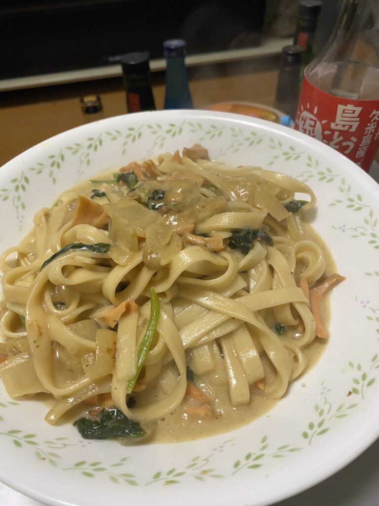 スモークサーモン40 玉ねぎ1/2 ほうれん草3