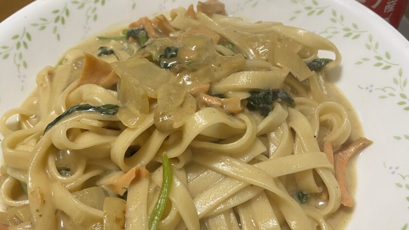 コンソメ小さじ1/2 無脂肪乳250 バター8