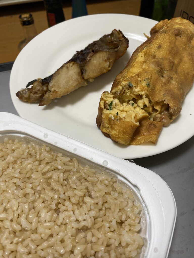 あじ塩焼き 納豆卵焼き 玄米ごはん