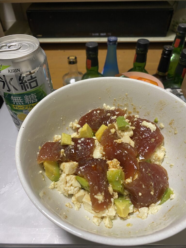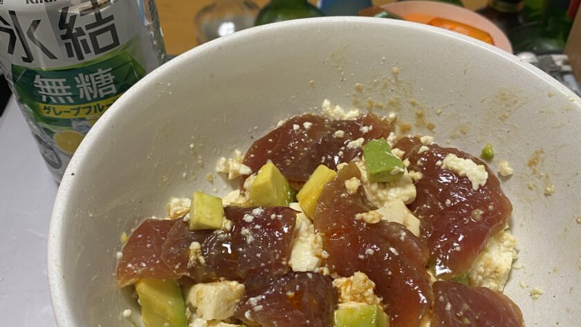 ポキ豆腐 半額マグロみっけた