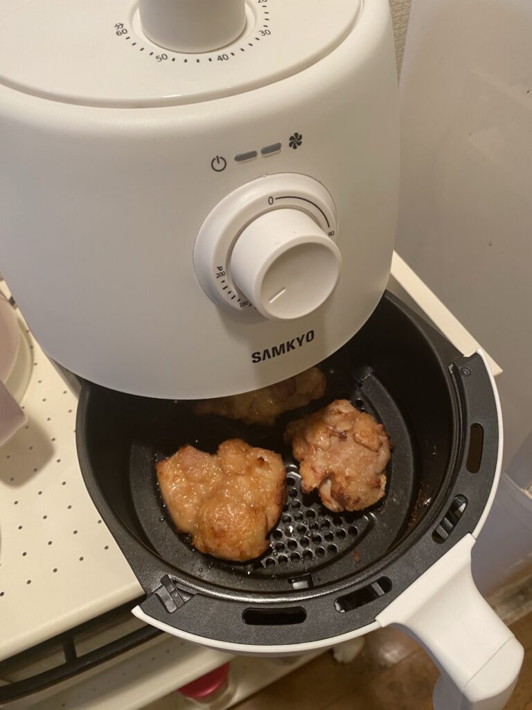 ノンフライヤー投入…米粉から揚げ