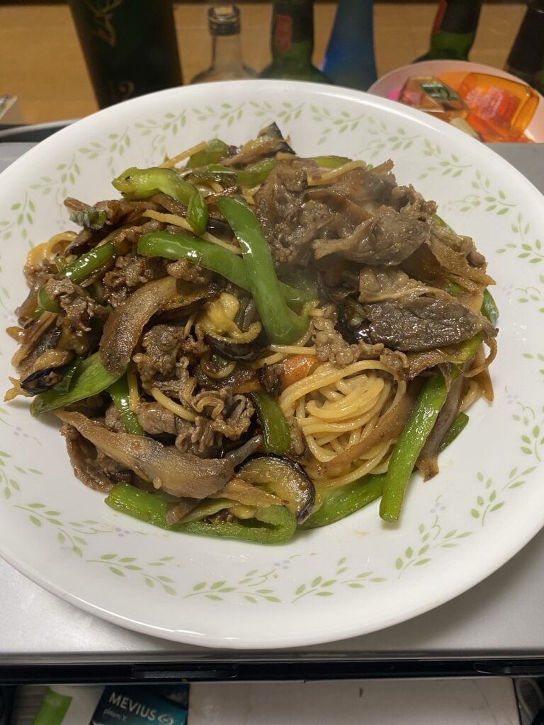牛バラ ごぼう にんじん なす ピーマン 豆麺