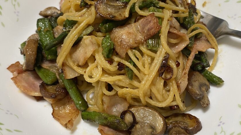 ベーコン マッシュ アスパラ ペペロンチーノ