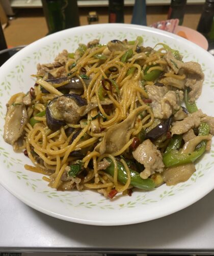 豚コマ ナス ピーマン 舞茸 バター 醤油 大葉 …