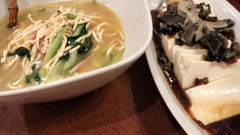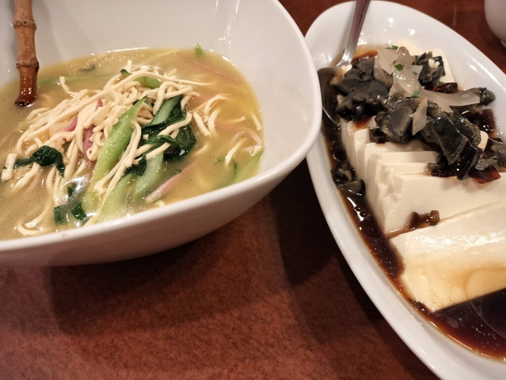 ピータン豆腐 ハムと干し豆腐 牛挽き肉と卵白のスープ
