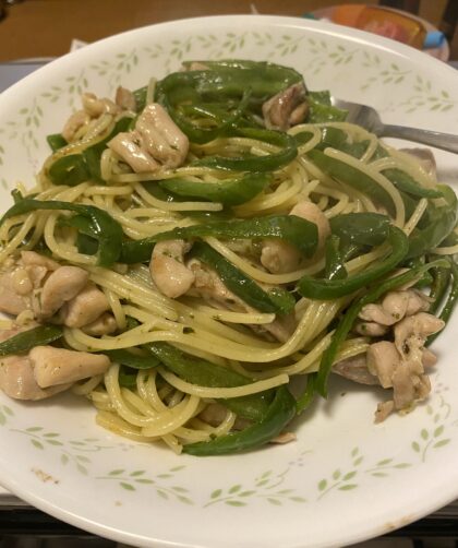 鶏ももピーマンバジルパスタ ミニトマト